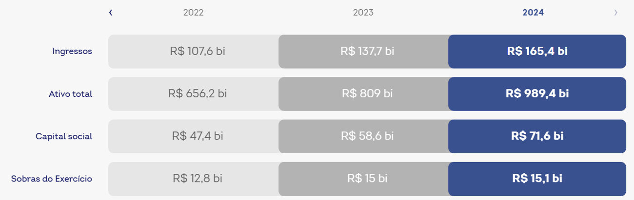 Este montante só é possível porque o cooperativismo de crédito tem crescido de maneira sustentável, ano após ano. De acordo com o AnuárioCoop, o setor registrou em 2024 recordes em ativos totais (R$ 989,4 bilhões), ingressos (R$ 165,4 bilhões), capital social (R$ 71,6 bilhões) e sobras do exercício (R$ 15,1 bilhões). |